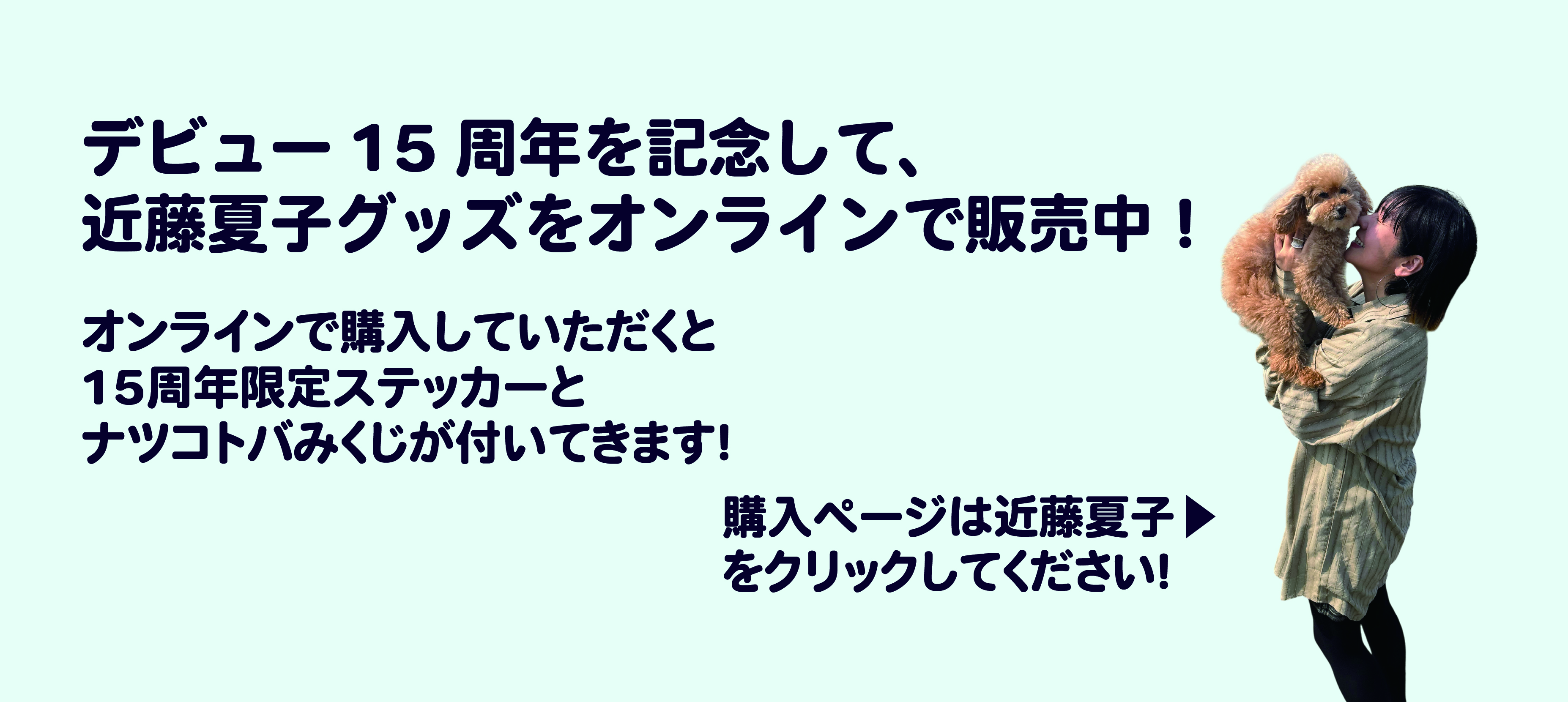 お知らせ 12/19(金)「KCPライブ」一般抽選先行スタート! 2025 年 10 月 20 日 お知らせ 12/19(金)「KCPライブ」ファンクラブ抽選先行スタート! 2025 年 10 月 12 日 お知らせ 近藤夏子 Kiss FM KOBEにて新レギュラー決定! 2025 年 9 月 8 日 お知らせ 近藤夏子15周年 を記念した 「KCP (近藤夏子 シティポップ プロジェクト)」第8段公開! 2025 年 8 月 30 日 お知らせ 「8/30(土)スナックなつこ」キャンセル分受付!※1部のみ、FC限定 2025 年 8 月 28 日